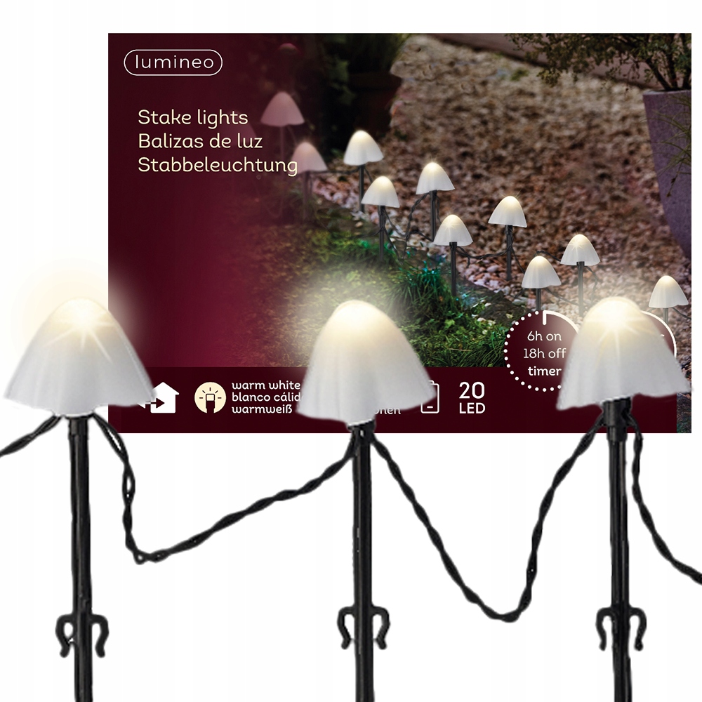 ЛАМПИ Садові світильники 20 світлодіодних ГРИБІВ Warm White, на батарейках 3,8 м