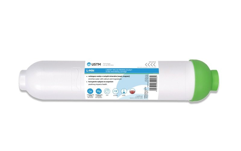 Вміст фільтрації виготовлено з природного доломіту, а для з’єднання потрібні з’єднувачі/коліна із зовнішньою різьбою 1/4 дюйма. Фільтр мінералізації повинен бути розміщений за мембраною .