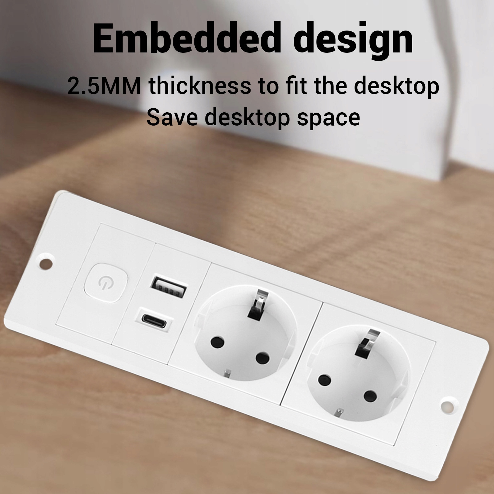 1. Вбудований дизайн: цей подовжувач живлення має вбудований дизайн товщиною 2,5 мм, який ідеально підходить для робочого столу, заощаджуючи місце та не займаючи жодної поверхні.