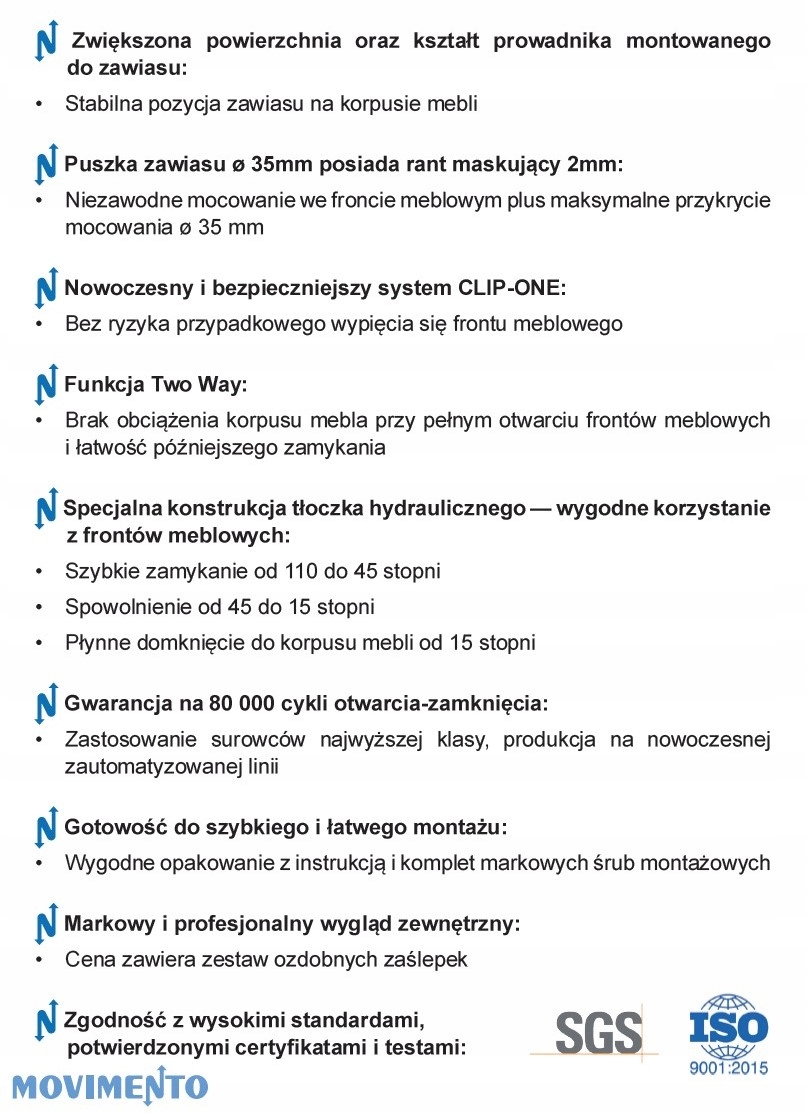 ГІДРАВЛІЧНА ПЕТЛЯ MOVIMENTO, ТИХЕ ЗАКРИТТЯ, НАПРАВЛЯЮЧА CLIP-ONE; ВТОПЛЕНИЙ 110°
