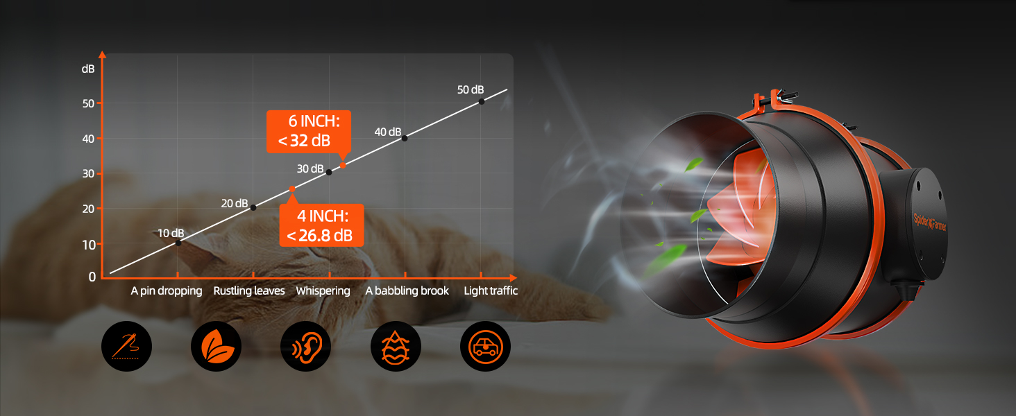 - ШИРОКЕ ЗАСТОСУВАННЯ: призначений для циркуляції повітря, покращуючи системи охолодження та опалення, а також циркуляцію повітря. 4-дюймовий вбудований канальний вентилятор є чудовим вибором для наметів для вирощування, шаф, комор, кухонь, ванних кімнат, підвалів тощо.