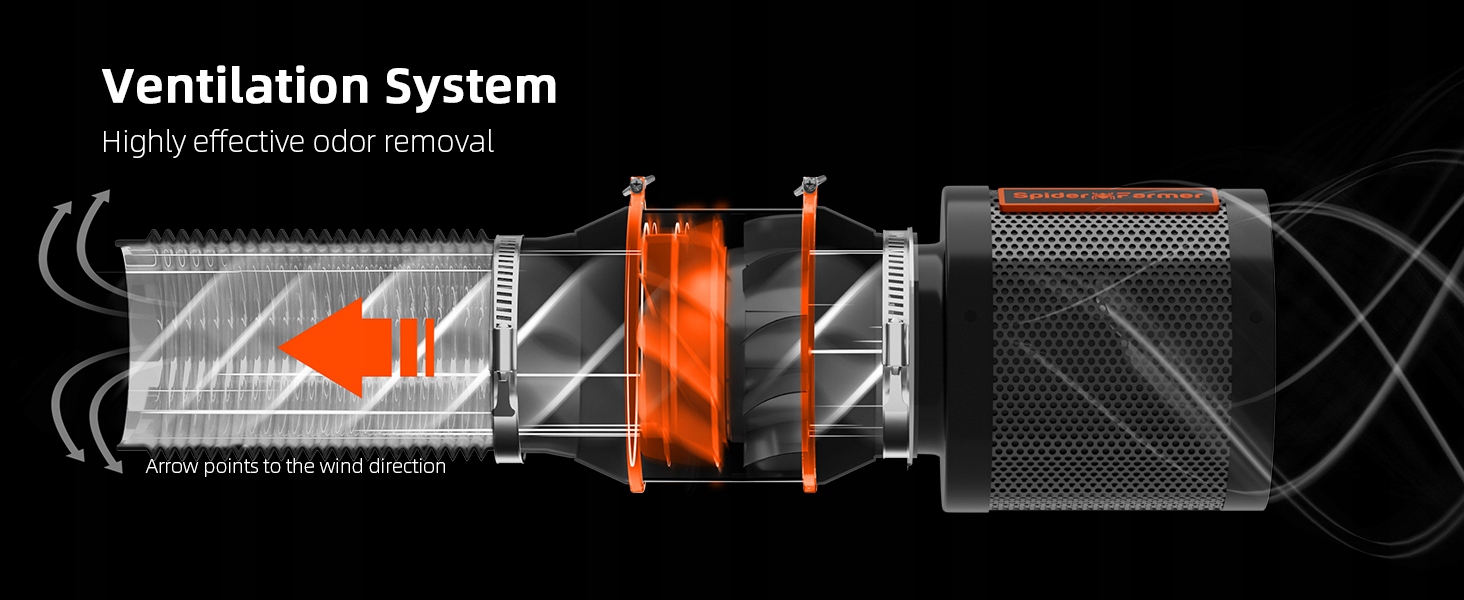 Версія 2025 має дизайн порту RJ12, програмовану зміну контролера на контролер GGS. Виправлення можна внести за допомогою програми Spider Farmer. Вентиляційна система для гідропонних наметів для вирощування, передача опалення/охолодження та вихлопних запахів.