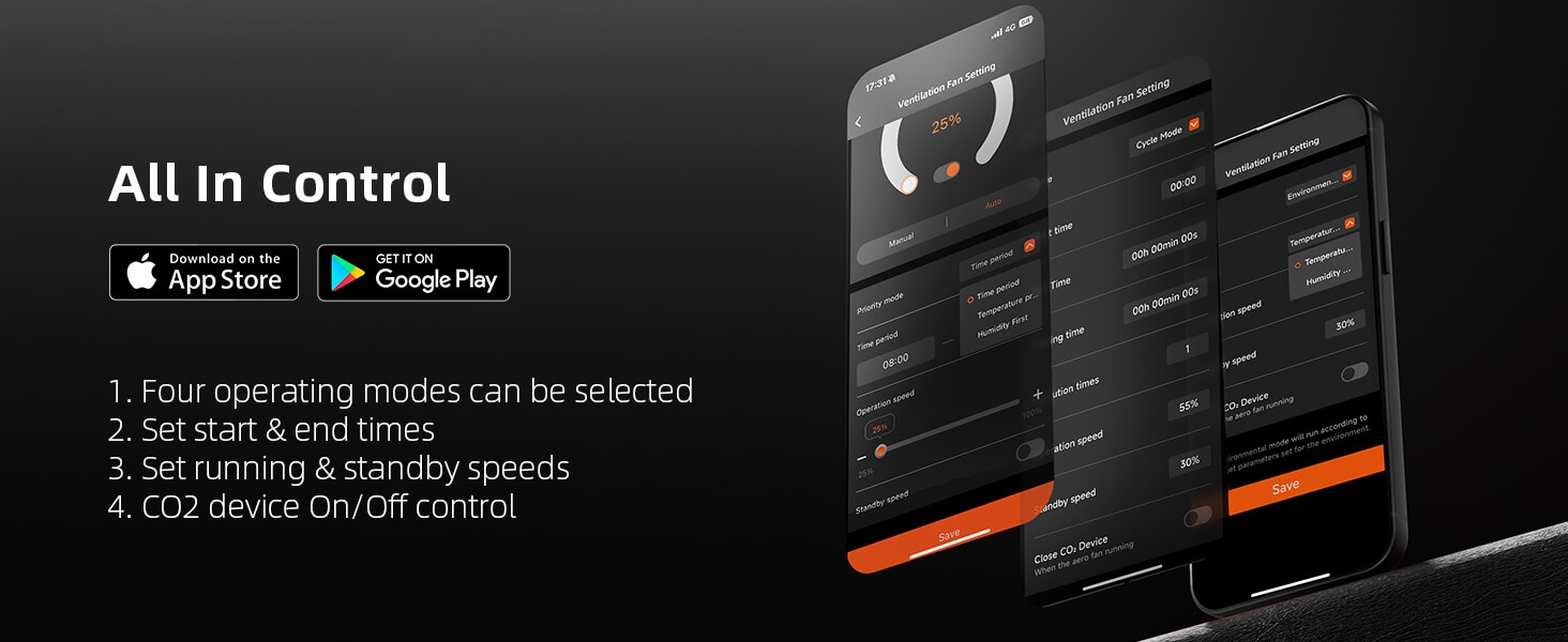 - ІНТЕЛЕКТУАЛЬНИЙ КОНТРОЛЕР: інтелектуальний контролер має кілька режимів роботи, 10 швидкостей вентилятора, його легко програмувати та автоматично контролює вологість і температуру за допомогою 4 простих налаштувань і сигналів тривоги, завдяки чому підтримання оптимальної температури та вологості у вашому просторі буде легким.
