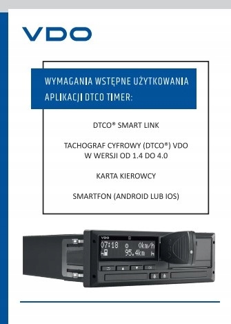 Призначений для контролю за робочим часом водія з урахуванням необхідних норм робочого часу, при цьому є зручним і простим рішенням для керування тахографом зі смартфона через зв'язок Bluetooth. Програма DTCO TIMER польською мовою доступна для завантаження в Google Play і App Store.