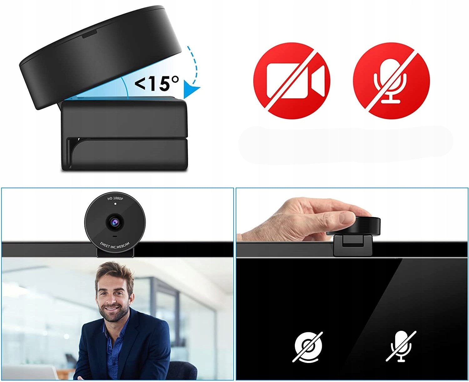 Інноваційний режим конфіденційності електронної веб -камери: Веб -камера EMEET C950 оснащений автоматичним датчиком конфіденційності, який блокує фото та звукові функції за допомогою руху лінз. Режим захисту буде активовано, коли об'єктив буде приведений до гори, що звертається до вгору. Просто вийміть об'єктив з кріплення, щоб відновити фотографії та аудіо через 3 секунди. T