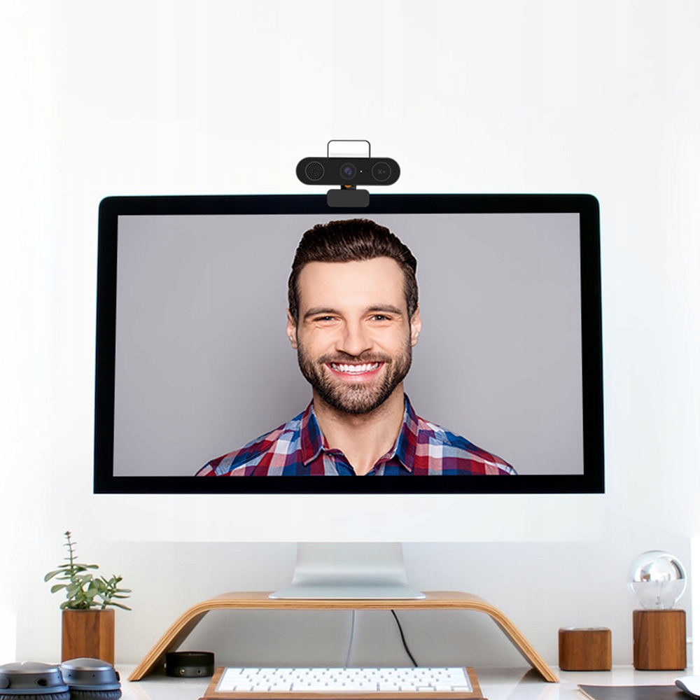 Пристрій оснащено функцією автоматичного кадрування AI, функцією відстеження обличчя та широким кутом огляду, які забезпечують ідеальне зображення вас. Таким чином, камера завжди підтримує ідеальний кадр, що сприяє плавному спілкуванню без непотрібних відволікань.