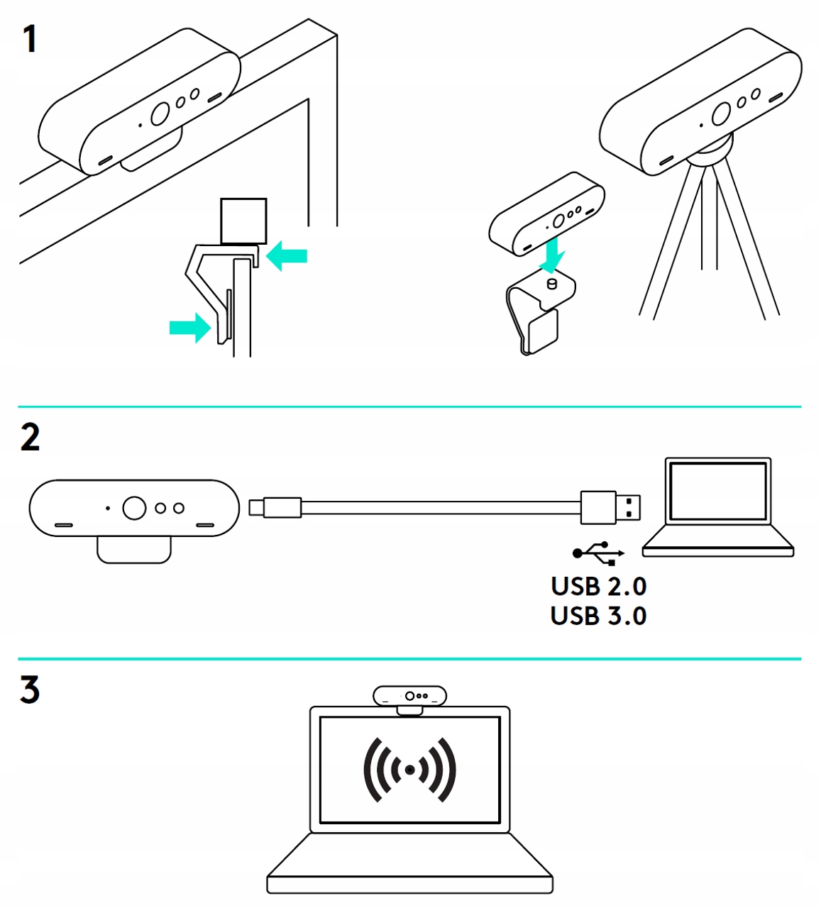 - Варіанти кріплення: на ноутбук/монітор/телевізор, можливість кріплення на штатив (продається окремо)