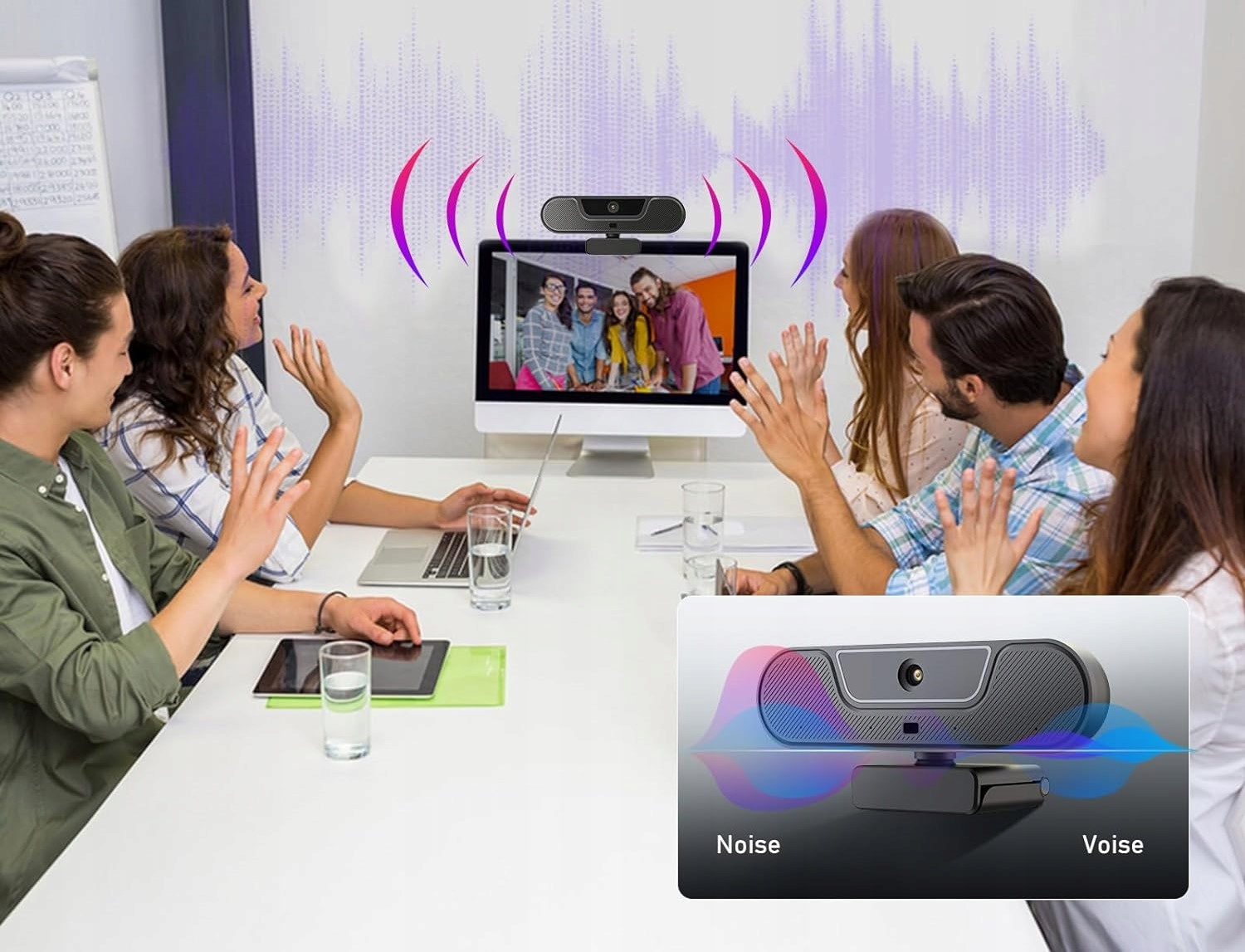 Вбудований шумопоглинаючий мікрофон і динаміки, інтелектуальне зменшення шуму, автоматично записує звуки людей у радіусі 6 метрів, без затримки.