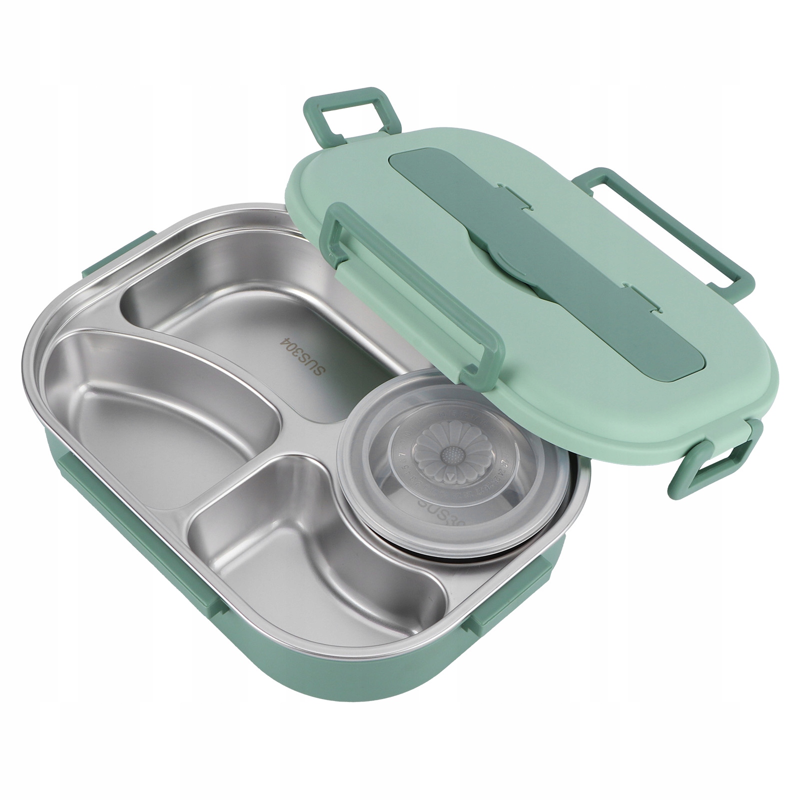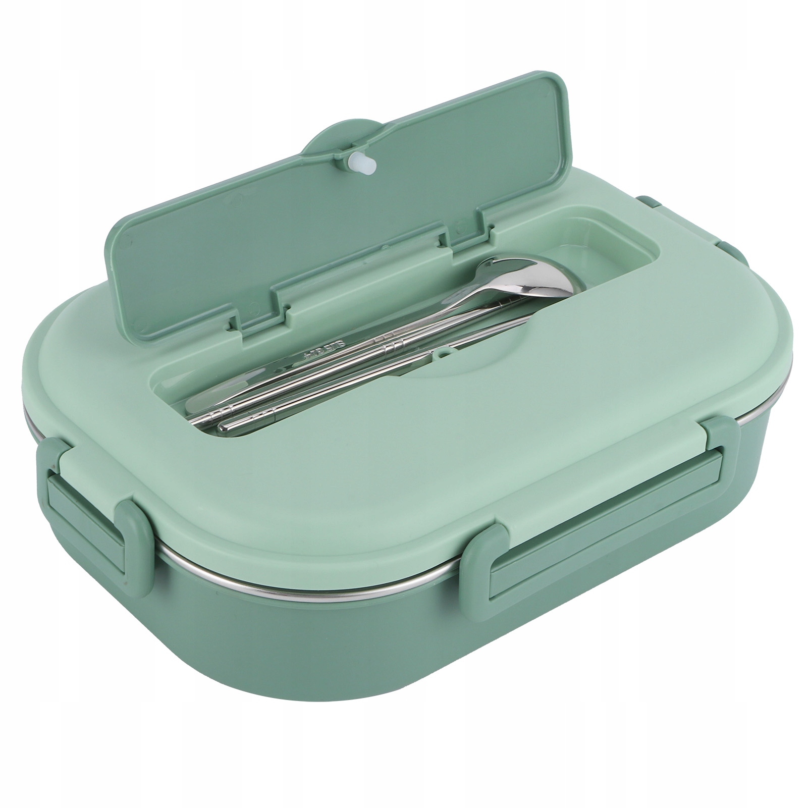 1. Нижній шар наповнений водою для збереження тепла, а кришка містить ложки з нержавіючої сталі та палички для їжі для зручності перенесення.