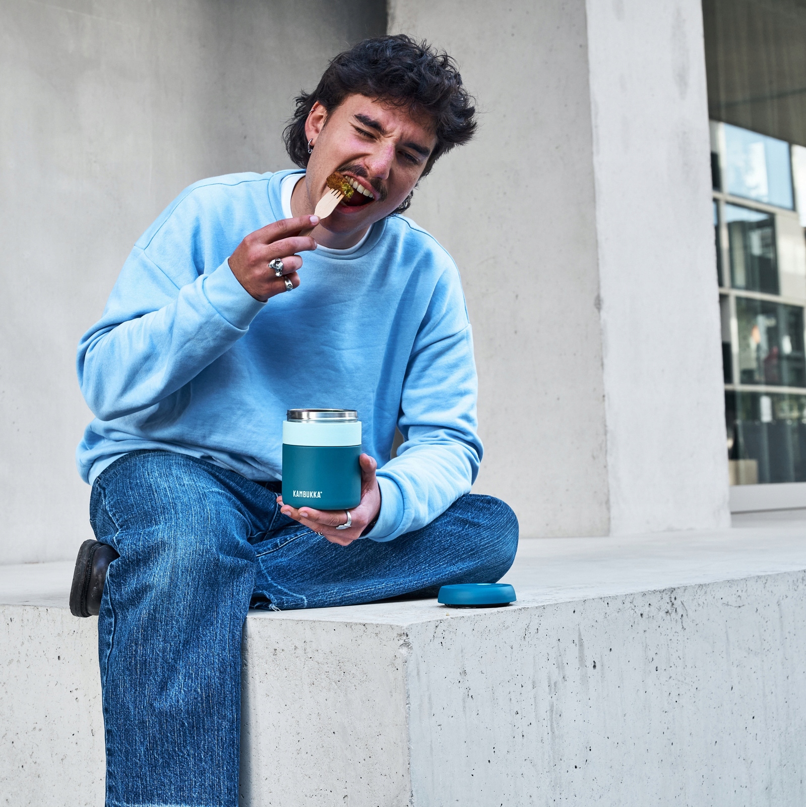 Cambukka Bora Deep Teal - це 600 мл вечеря, що дозволяє тривалий час підтримувати температуру та свіжість страв. Термос підтримує високу температуру їжі до 9 годин, що робить його ідеальним контейнером для обіду для роботи або в університеті. Завдяки щільній кришці, Thermos - це чудовий вибір для гірських подорожей, що дозволяє насолоджуватися теплою стравою під відкритим небом. Його проста форма та мінімалістична конструкція в темно -зеленому кольорі надають йому елегантний вигляд. Кришка термоса оснащена вентиляційним отвором, що дозволяє легко звільнити пар і зменшити тиск, що полегшує відкриття термоса з гарячою їжею посередині.