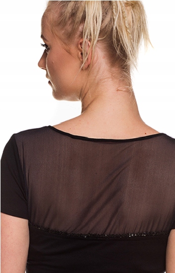 - спереду та ззаду з прозорою сітчастою вставкою, прикрашеною чорними паєтками