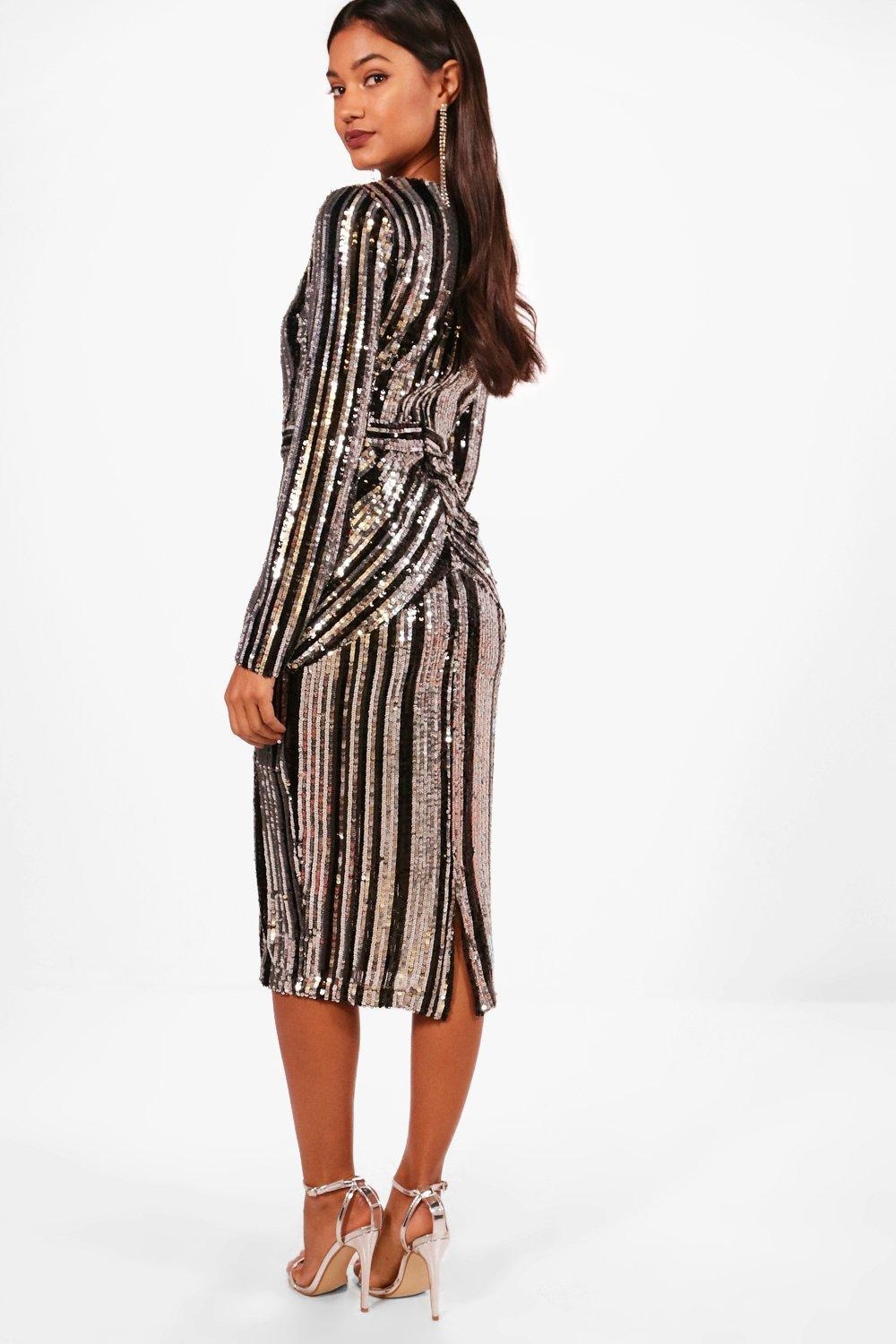 ВЕЧІРНЯ ГЛАМУРНА СУКНЯ МІДІ З ДОВГИМ РУКАВОМ BOOHOO 36 FIT З ПАЙЄТКАМИ