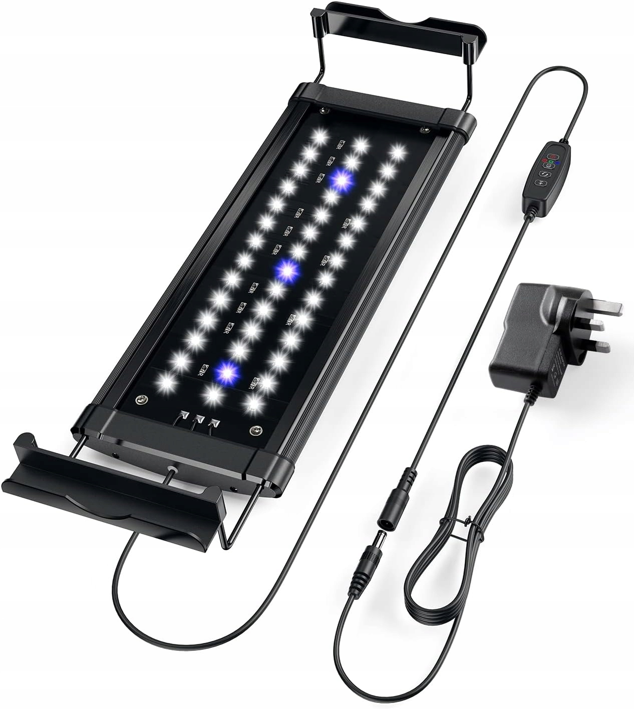 Світлодіодне освітлення акваріума TCCBAC, 7-ватне освітлення акваріума з таймером, повний спектр акваріумної лампи, регульована яскравість, підставка та 2 режими (7 Вт для акваріума 30-50 см)