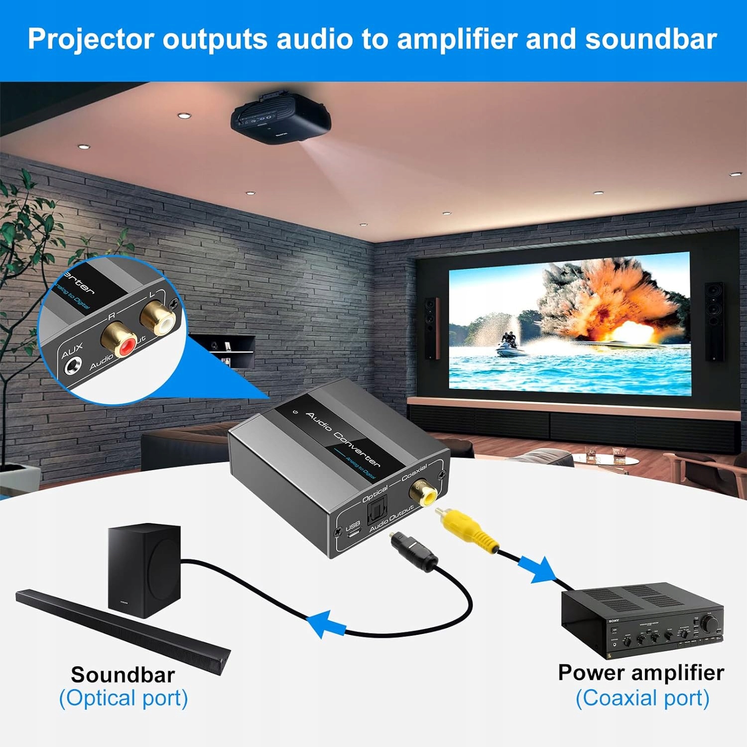 Невеликий компактний конвертер Rca в оптичний аудіо Конвертер із металевим алюмінієвим корпусом, що гарантує розсіювання тепла та електромагнітну сумісність, подовжуючи термін служби виробу.