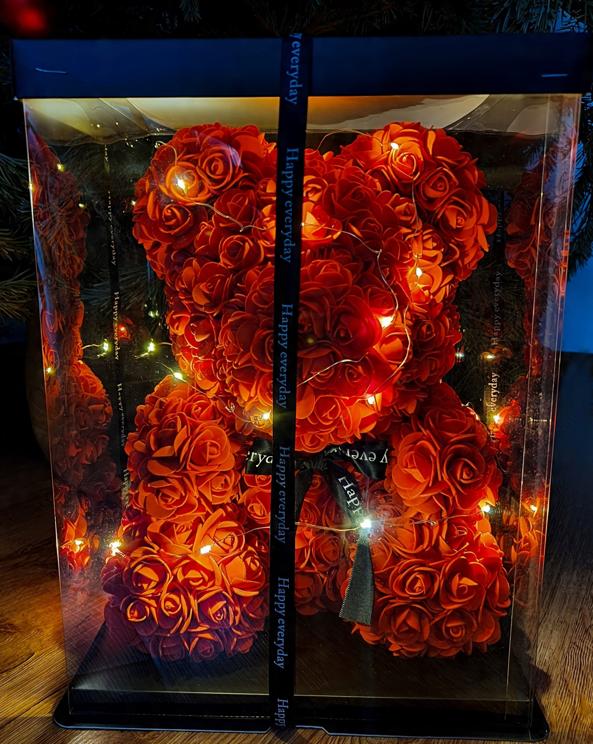 ВЕДМЕДИК ІЗ ТРОЯНДАМИ 40 СМ XXL З КОРОБКОЮ ТА СВІТЛОМ ПОДАРУНОК НА ДЕНЬ СВЯТОГО ВАЛЕНТИНА