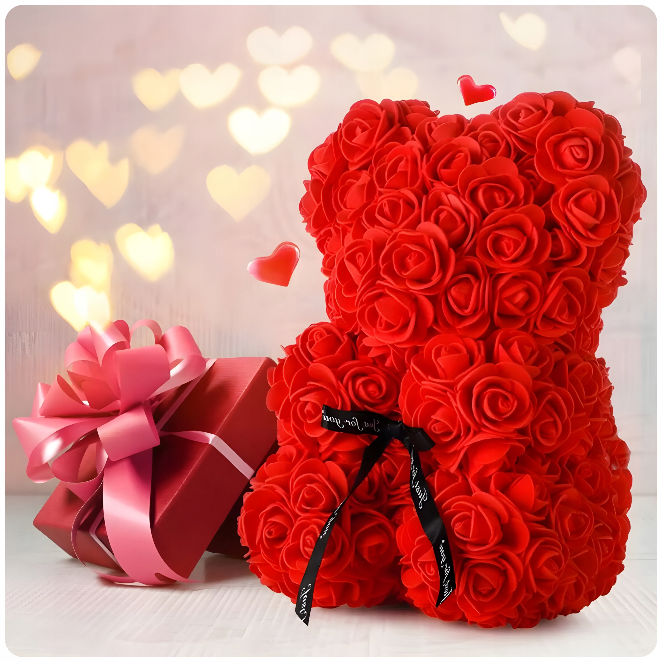 ВЕДМЕДИК З ПЕЛЮСТКАМИ ТРОЯНД ІДЕЯ ПОДАРУНКУ ДЛЯ ЇЇ ДО ДНЯ СВЯТОГО ВАЛЕНТИНА + КОРОБКА