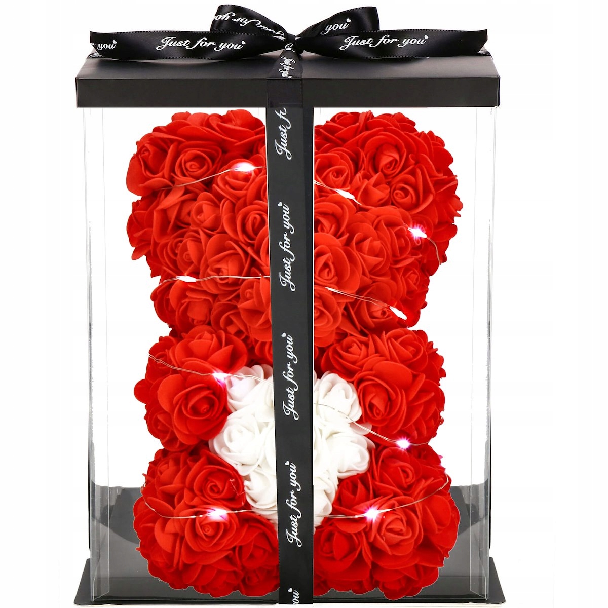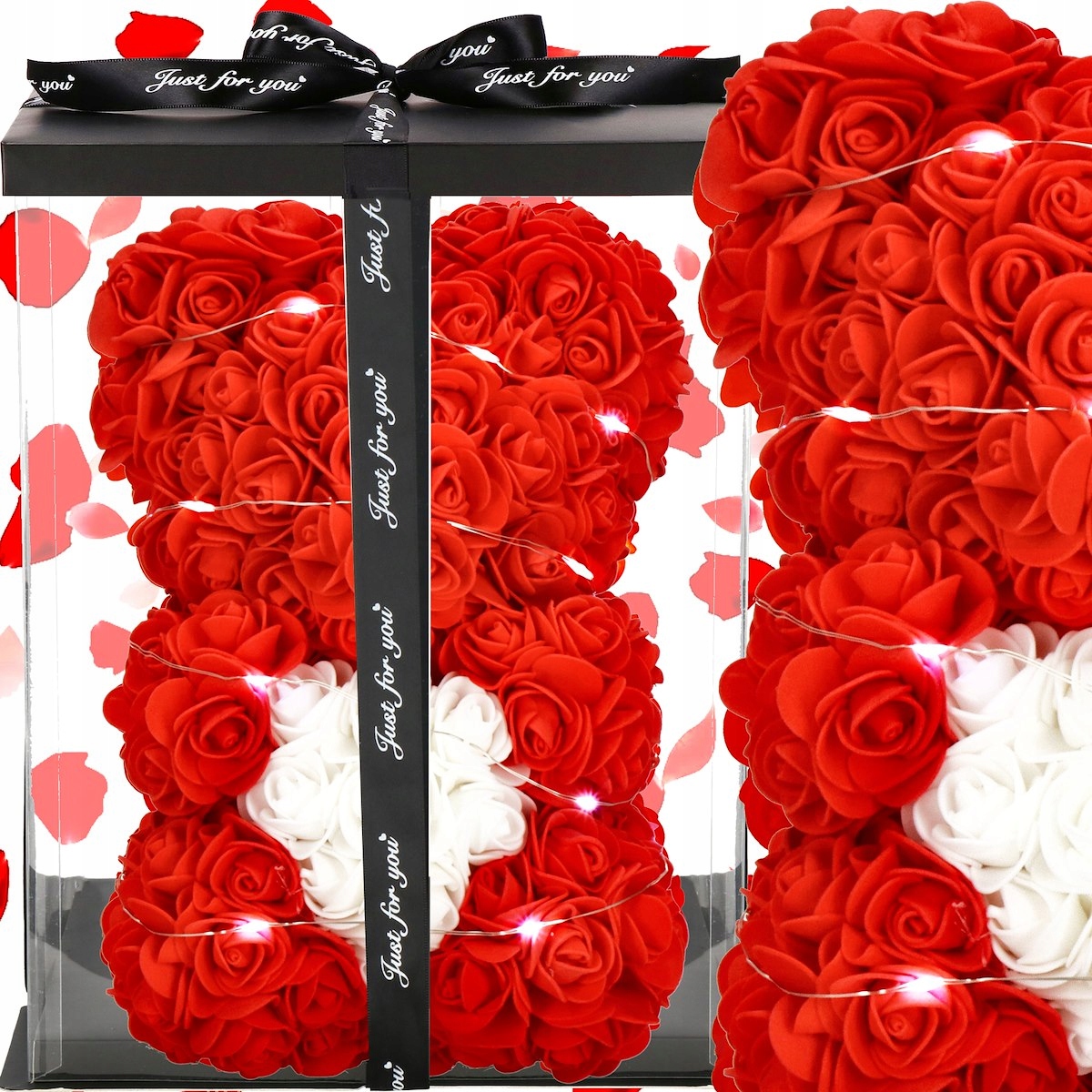 ВЕДМЕДИК З ТРОЯНДАМИ 30 СМ ТРОЯНДОВИЙ ВЕДМЕДИК З ПЕЛЮСТКАМИ ТРОЯНД ПОДАРУНКОВА КОРОБКА+20LED