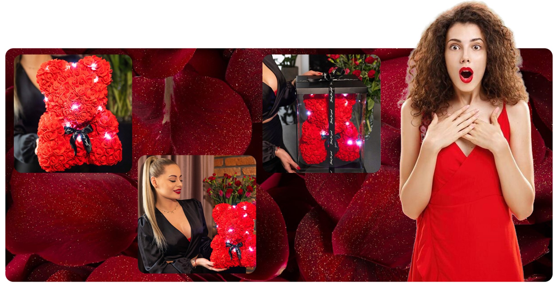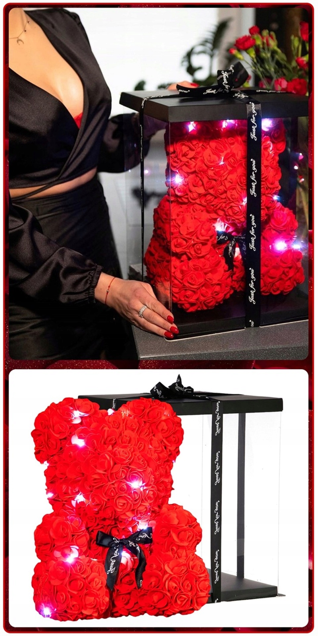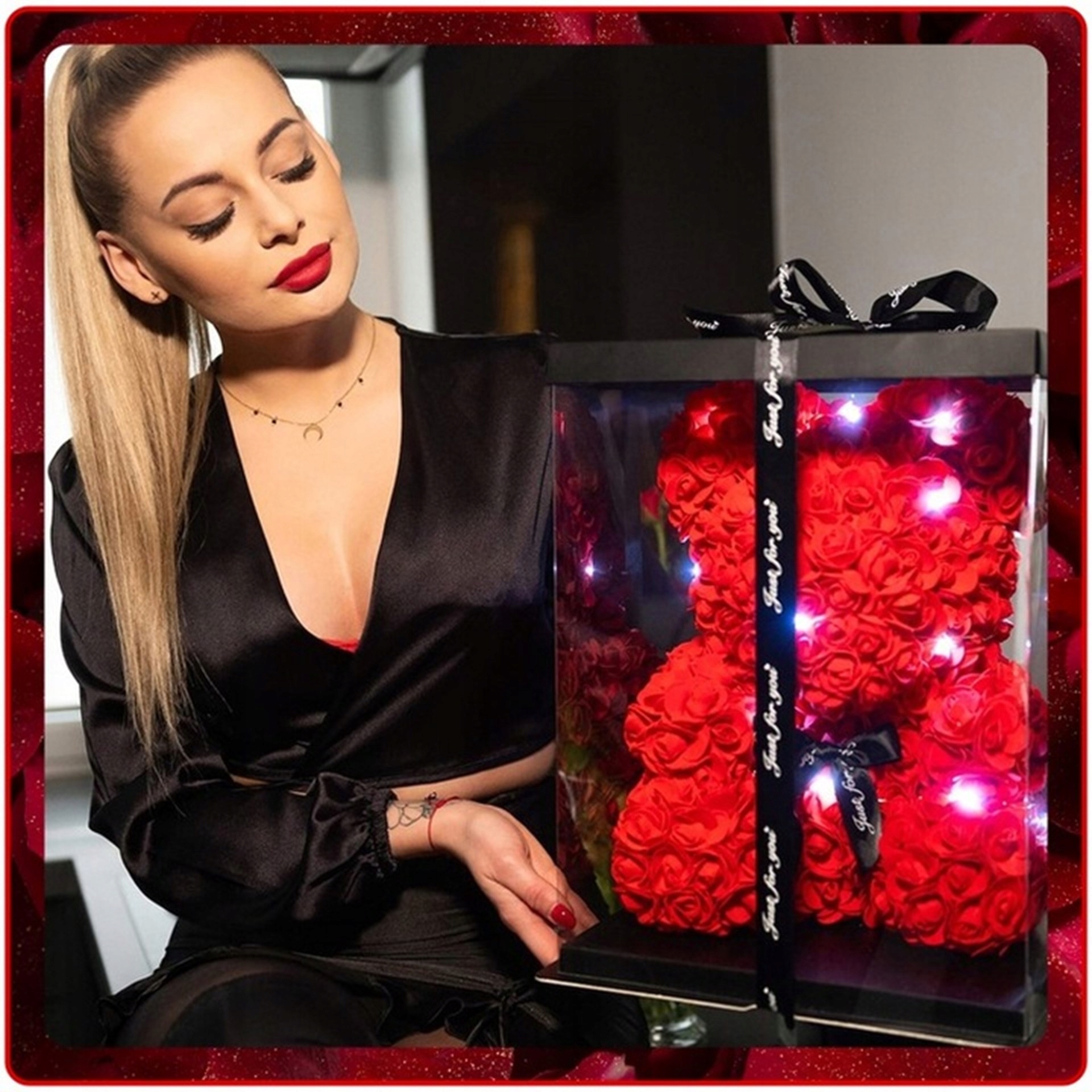 Наші плюшевий ведмедик з пелюстків троянд бренд springos®, також називається "трояндова плюшева" , освітлена тонким світлом світлодіодів, це варіант подарунка у винятковій версії,