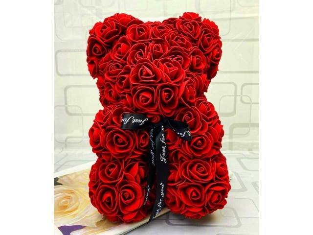 Пропонований виріб складається приблизно з 600 пінопластових троянд, які скомпоновані у формі милого ведмедика. У комплект входять світлодіодні лампи, які ще більше висвітлять ведмедика і зроблять подарунок ще більш оригінальним. Завдяки тому, що троянди ніколи не в'януть, композиція довгий час служитиме гарною прикрасою.