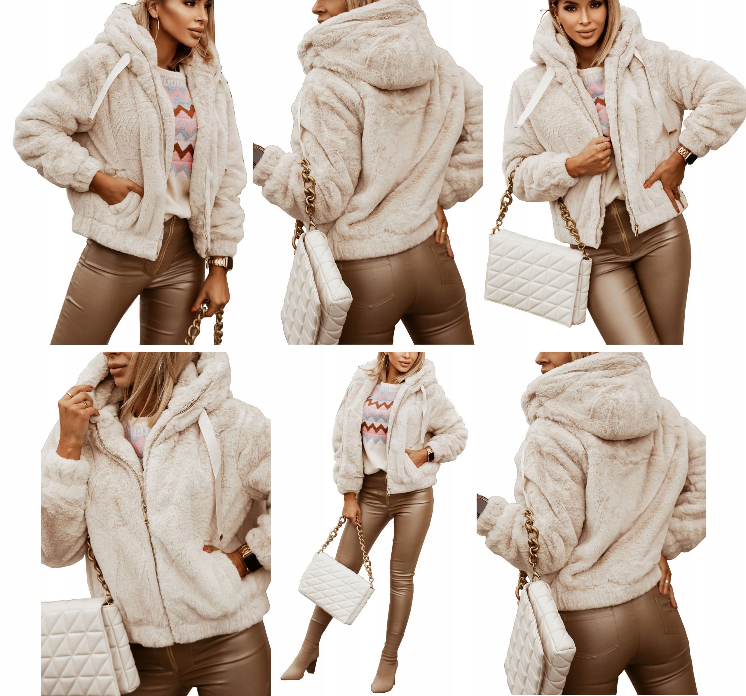 Коротка хутряна куртка закріплена блискавкою. Він має довгі рукави закінчені еластичними манжетами, а також еластичною манжеткою також внизу куртки. бічні кишені у стилі кенгуру. атласні струни на капоті , які дозволяють регулювати окружність додати шарм. Прямий зріз куртки робить його адаптуватися до будь -якого типу фігури. куртка, виготовлена з надзвичайно приємного до сенсорного хутра , ідеально підходить як для повсякденних, так і для класичних стилів для холодних днів.