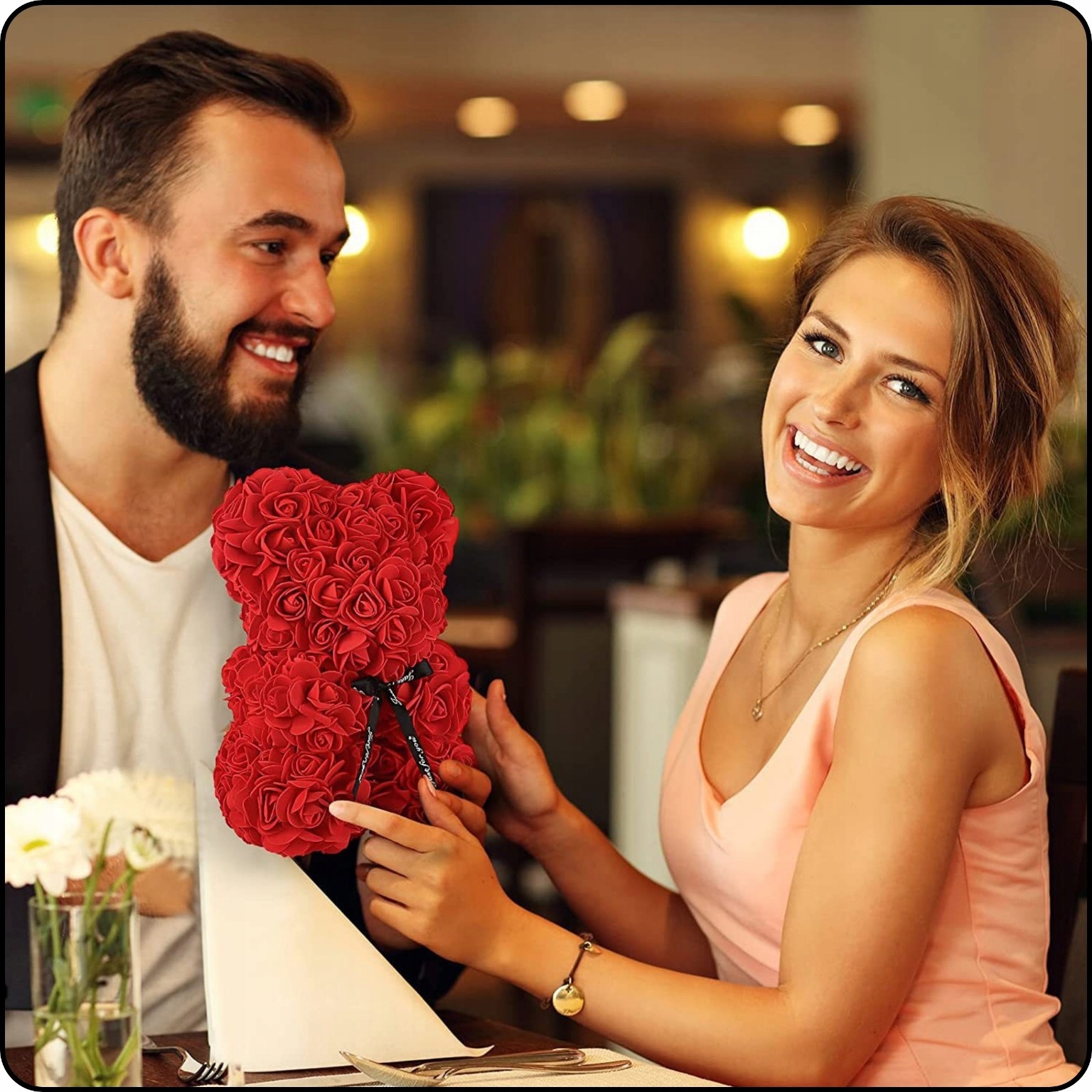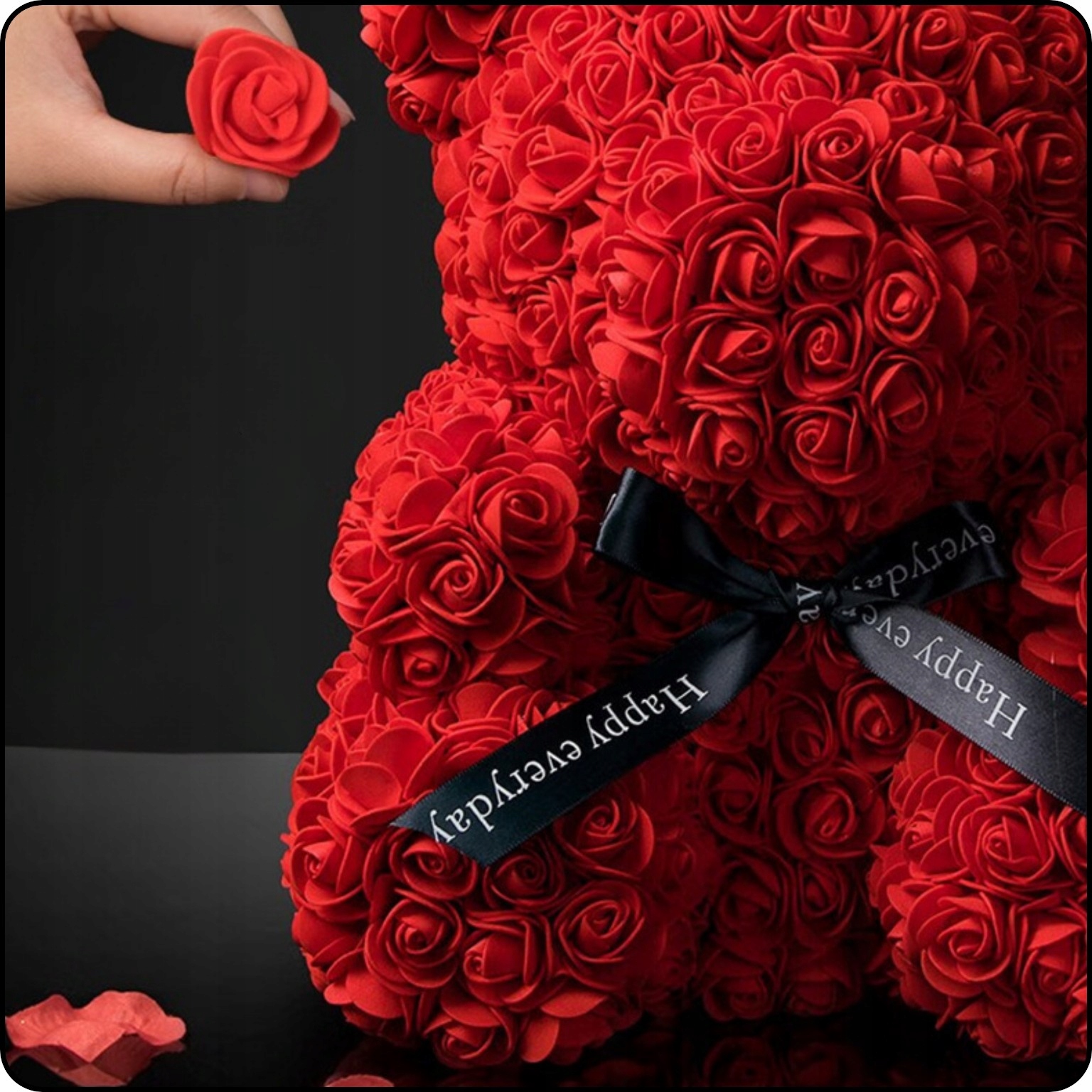 4 , плюшевий ведмідь з троянд він не втратить форми чи кольору , навіть через багато років. Це подарунок, який буде супроводжувати вас щодня, нагадуючи вам про ваші спільні моменти та мрії. Ведіть з трояндами - це не лише іграшка, але й друг, який завжди буде чекати вас з посмішкою та розпростертими обіймами.