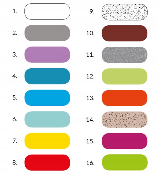 Доступний у комбінації кольорів: білий, чорний, зелений, синій , рожевий, сірий, бежевий, оранжевий.