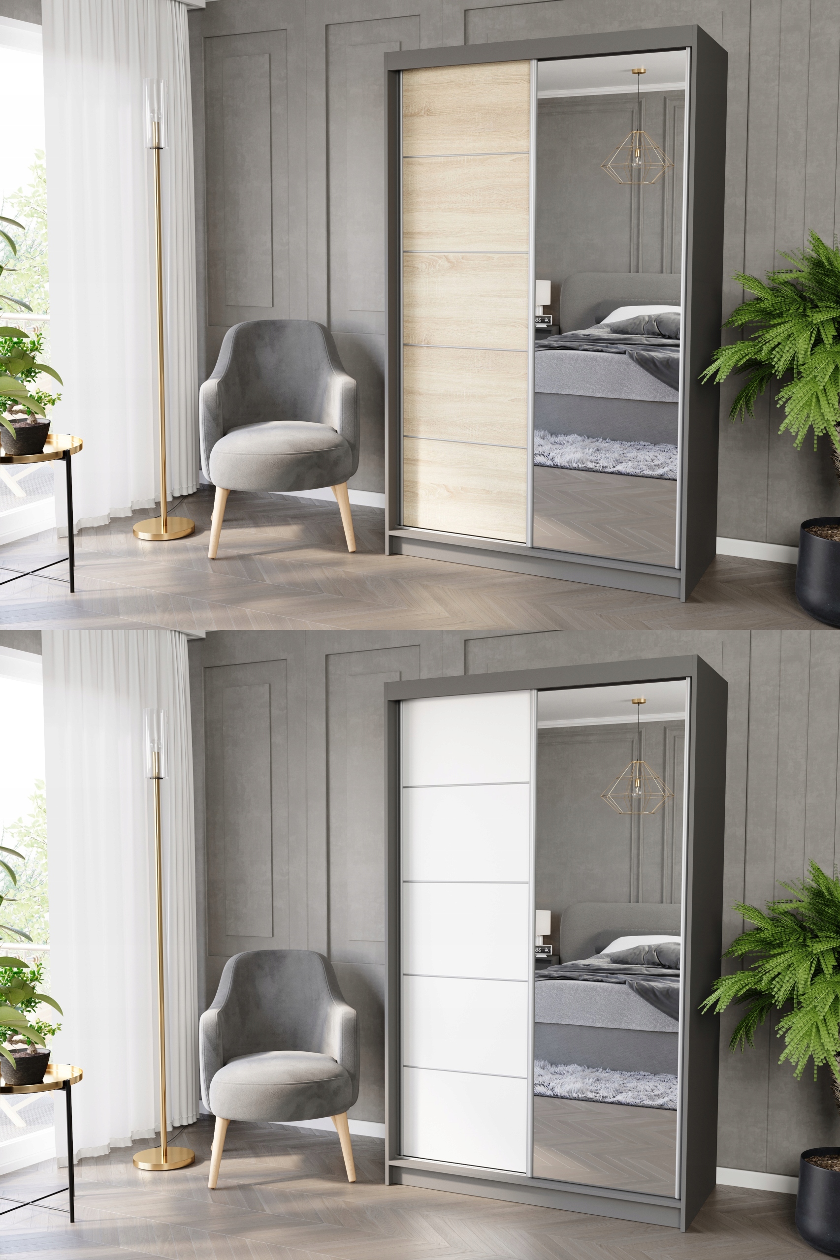 Ви шукаєте стильний та практичний гардероб для своєї спальні, передпокою чи гардероб? ширина 120 см ширини ковзання - ідеальне рішення, яке поєднує елегантну конструкцію з зручністю використання.