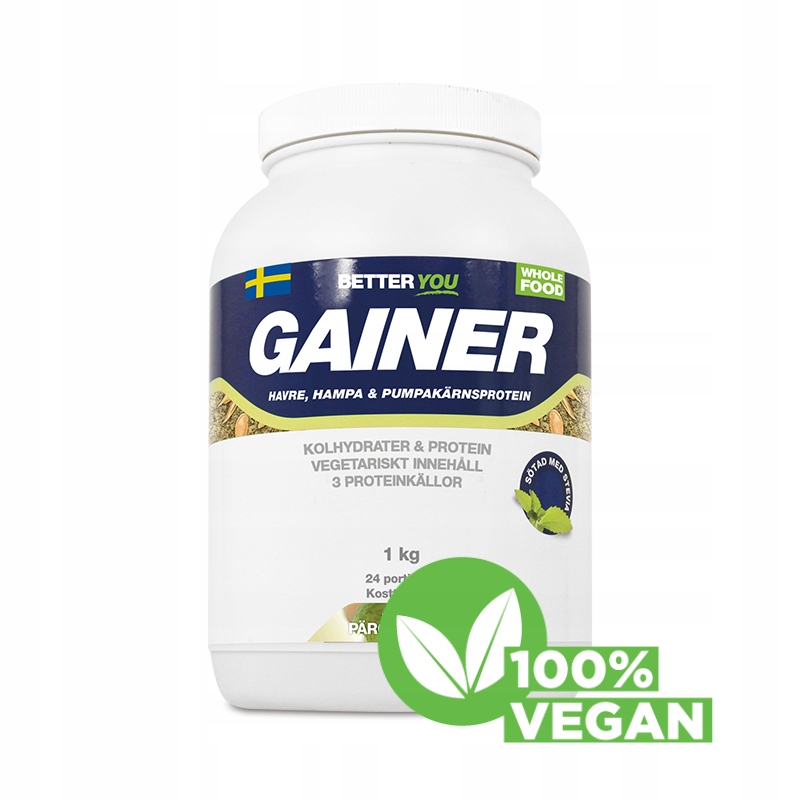 ВЕГЕТАРИАНСЬКИЙ ГЕЙНЕР - 1000 грамів . Вегетаріанський гейнер з унікальною комбінацією трьох різних рослинних білків: коноплі, вівса та гарбузового насіння є чудовим способом відновити енергію. Поєднання цих джерел білка є захоплююче поєднання амінокислот. Вуглеводи, які містяться в Гейнері, є «палатинозою» — унікальним вуглеводом, який забезпечує повільний рівномірний потік цукру в крові, тому наш вегетаріанський гейнер також ідеально підходить перед тренуванням або як перекус.