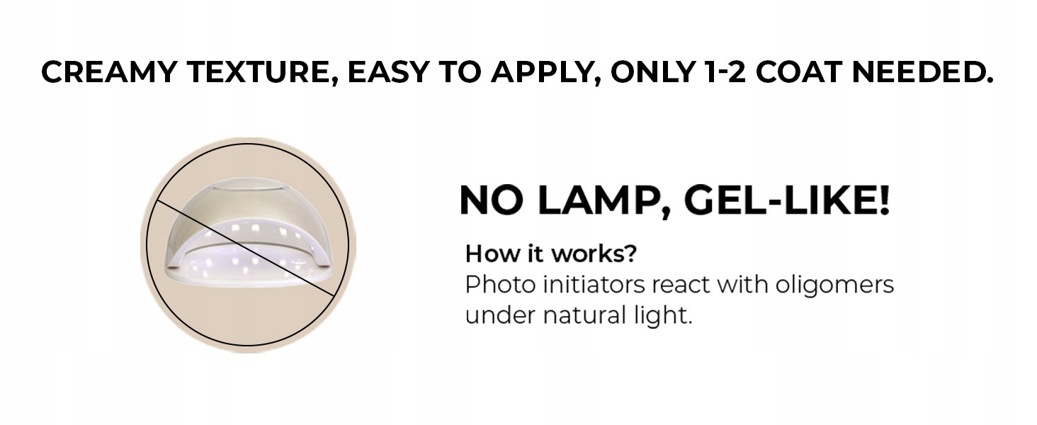 Класичний веганський лак для нігтів, який реагує на природне світло, отримують з БІО сировини та складається з натуральних інгредієнтів рослинного походження. Формула не містить 25 потенційно шкідливих речовин, не проходить тестування на тваринах і отримана екологічно.