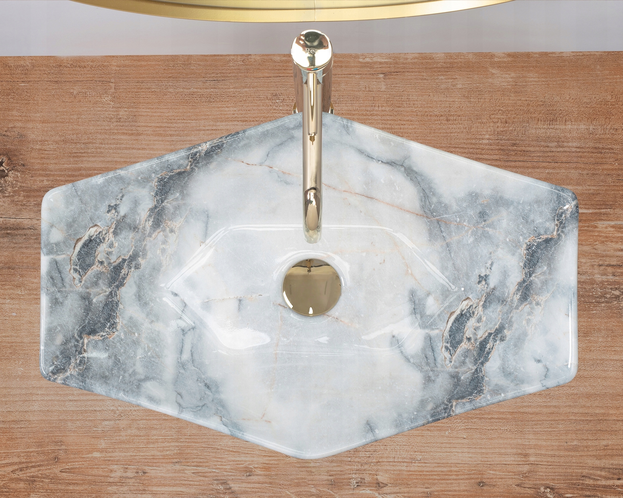 Завдяки техніці, у якій виготовлено верхній шар умивальника, кожен виріб має унікальний і неповторний візерунок. Цей ефект імітує натуральний камінь.