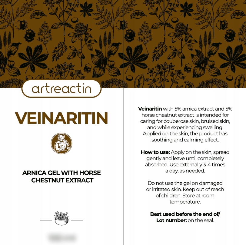 Вейнаритин з 5% екстрактом арніки та 5% екстрактом кінського каштана призначений для догляду за шкірою з розширеними капілярами, синцями та набряками. При нанесенні на шкіру надає заспокійливу і заспокійливу дію. Інгредієнти, що входять до складу гелю, мають протизапальну, антиоксидантну і, що особливо важливо, протинабрякову дію.