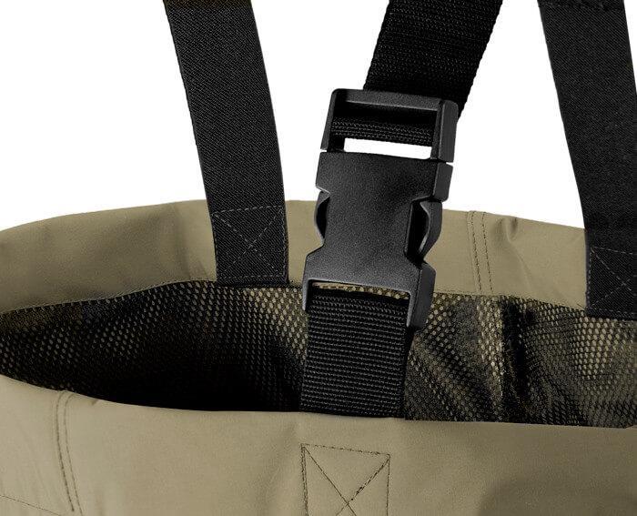 Величезною перевагою, яку зазвичай не можна побачити в цій категорії, є неопренове посилення колін, що дозволяє, наприклад, дуже зручно стояти на колінах біля води. Крім стандартних регульованих плечових ременів, ця модель також має знімний ремінь, який дозволить ще краще підігнати її під фігуру рибалки. Гумове взуття з міцною та стійкою підошвою допоможе вам навіть у складних умовах. Звичайно, навколо п’ят також є виступи, щоб було легше знімати взуття.