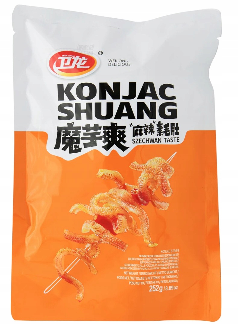 Відкрийте для себе цікаву, оригінальну закуску прямо з Китаю, яка поки що не була доступна в Польщі, і тепер у вас є унікальна можливість спробувати! Введіть свої смакові рецептори в східну пригоду з смужками WL Wei Long Konjac з гострим і кислим смаком. Ці смачні смужки з Konjac, також відомі як "диявольські мови", є чудовим вибором для людей, які шукають здоровішу альтернативу традиційним закускам. Konjac, рослина, багатий клітковиною, не тільки забезпечує задовільну хрустку, але й сприяє здоров’ю з доброго кишечника.