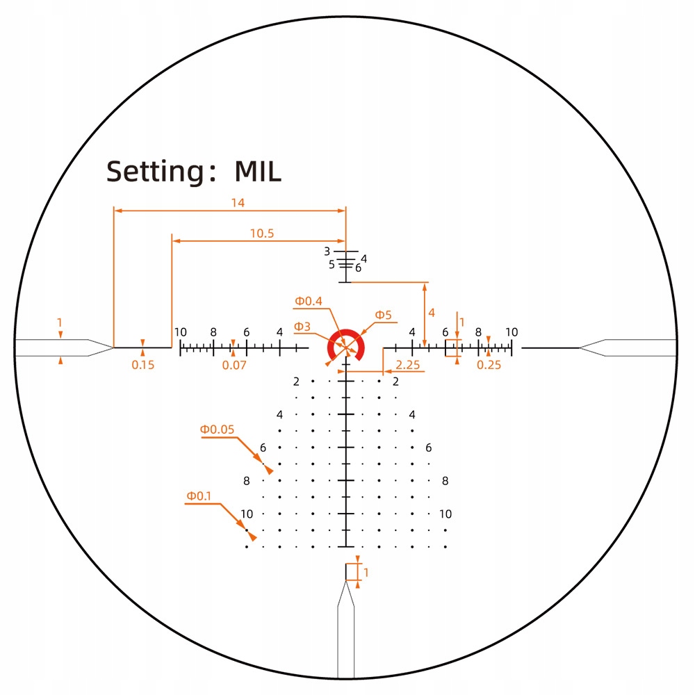 Приціл можна відрегулювати в діапазоні близько 35 миль одним клацанням на 1/10 милі. Крім того, окуляр можна встановити для діоптрів від 2,5 до +2,5. Алюмінієвий тубус має діаметр 30 мм, завдяки якому він використовується для нього широкого спектру складання для прицілів, доступних на ринку. Герметичний алюмінієвий корпус 6061 T 6 відповідає стандарту герметичності IP67. Крім того, пристрій здатний протистояти ударам до 1000 г.