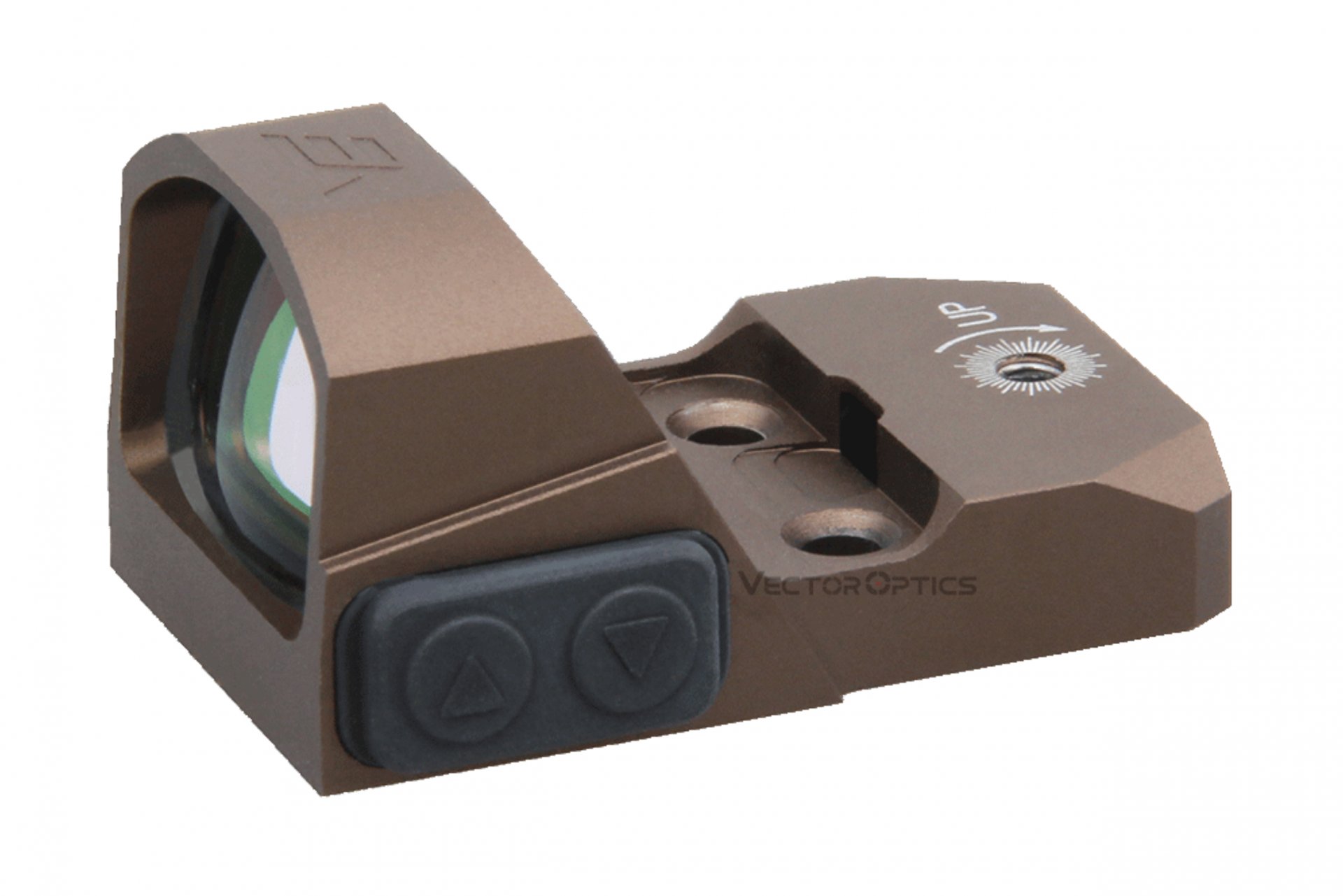 векторна оптика шаленого тактичного коліматора - ідеальний вибір для короткої зброї завдяки його компактним розмірам. Його конструкція виготовлена з алюмінієвого сплаву 6061-T6 і покрита покриттям FDE Coyote. Клас водостійкість IPX6 також забезпечує стійкість до дощу та вологи.