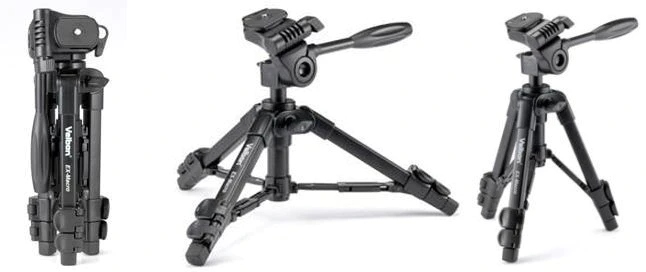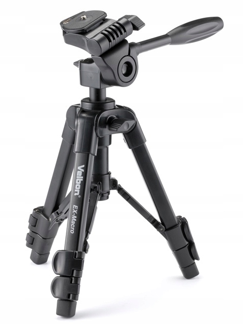 velbon Ex-Macro-це невеликий штатив таблиця з максимальною висотою 56,3 см і завантажує до 1,5 кг, оснащений головою та швидким роз'ємом.