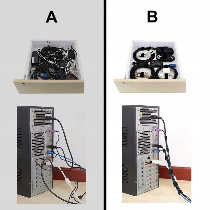Наша інноваційна стрічка Velcro є незамінним інструментом, який ефективно впорається з непривабливим лабіринтом проводів і кабелів, який домінує на вашому столі.