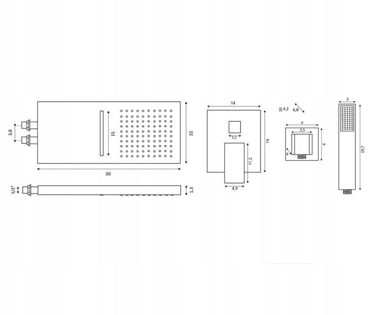 EBOX CONCESSED SET CASCADE RAIN SHOWER