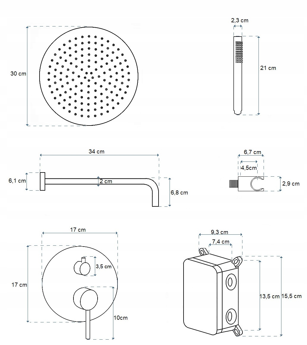- Розміри душової кабіни: 30 см