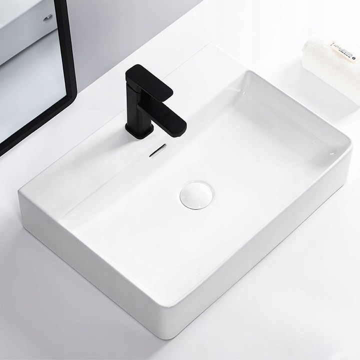 Умивальник на стільницю, який ідеально підходить для сучасних ванних кімнат. Виготовлений з якісної білосніжної сантехнічної кераміки. Умивальник призначений для встановлення на стільницю або шафу.