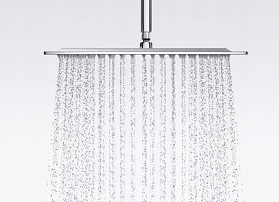 Тропічний душ серіїULTRA-SLIM CHROM, встановлений на кронштейні, додатково встановлений на кульовому шарнірі. Таке рішення дозволяє вільно регулювати кут розпилення. Товщина краю тропічного душу становить лише 2 мм. Душова лійка має форсунки, виготовлені за технологією Anti-Calc. Матеріал, з якого виготовлені насадки, - спеціальна суміш силіконів. Цей тип матеріалу захищає вихідні отвори форсунок від відкладень, таких як вапняк від жорсткої води. Якщо є видиме зниження прохідності силіконових сопел, їх можна знову прочистити, обережно натиснувши на них рукою.