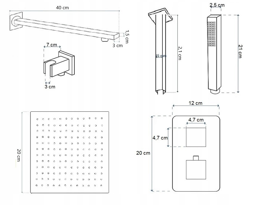 VELDMAN ТЕРМОСТАТИЧНИЙ КВАДРО НАБІР НАСТІННИЙ 20 СМ 4023-1002