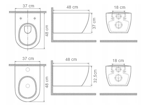 - Відстань між гвинтами кріплення унітазу: 18 см