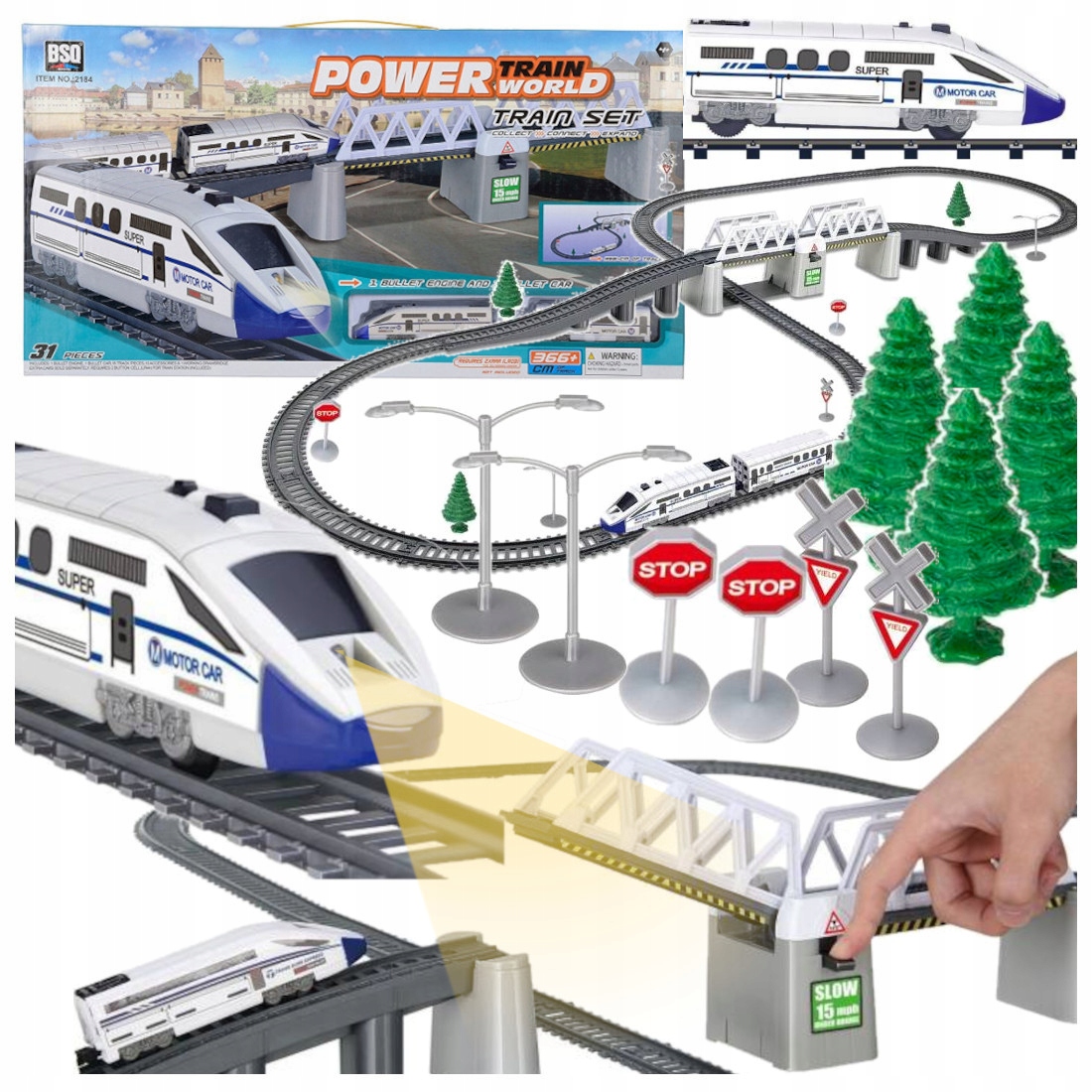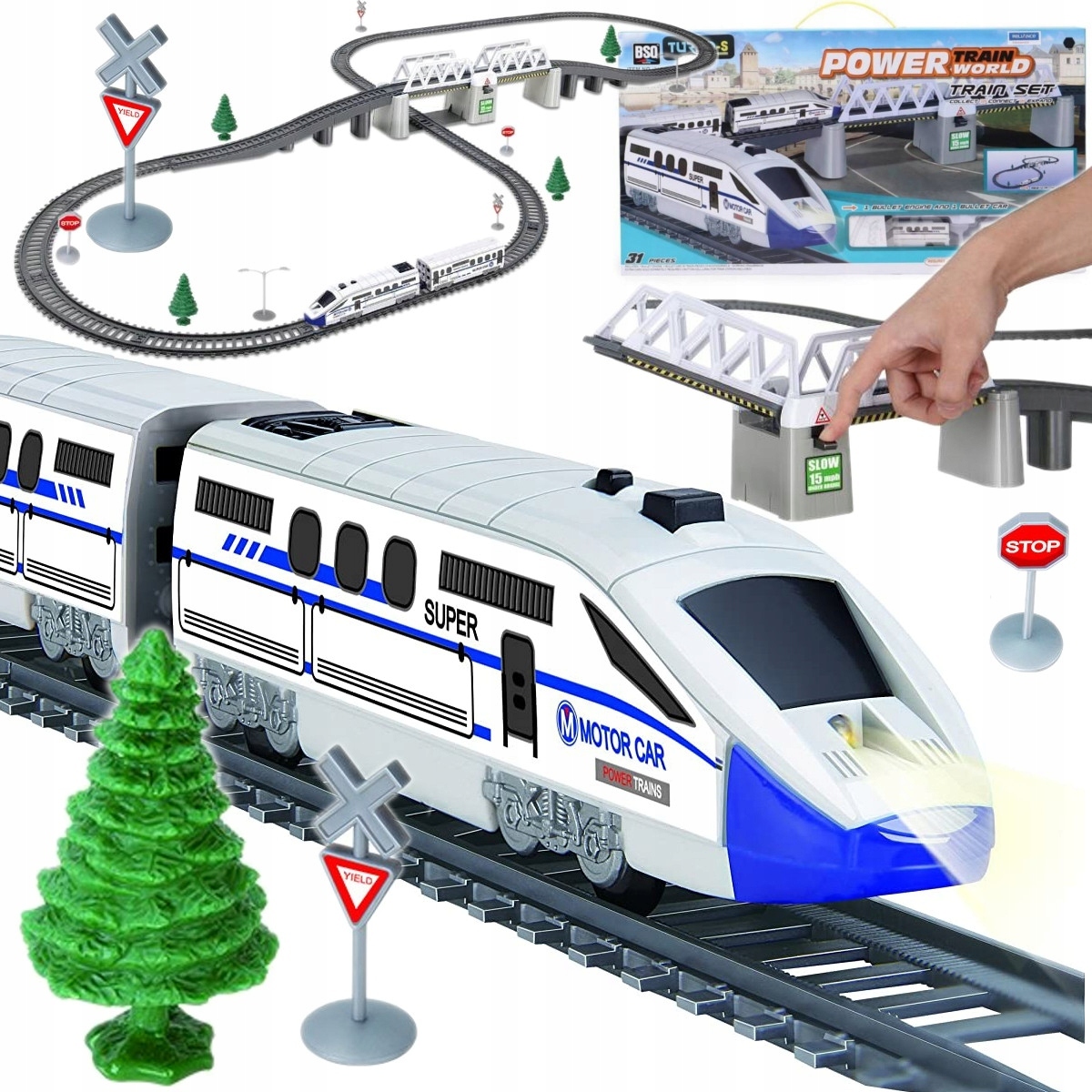 - Електропоїзд створений з неймовірною увагою до найдрібніших деталей і є ДУЖЕ РЕАЛЬНИМ ЗОБРАЖЕННЯМ справжній залізничний поїзд. Набір доповнено рухомим підйомним містком.