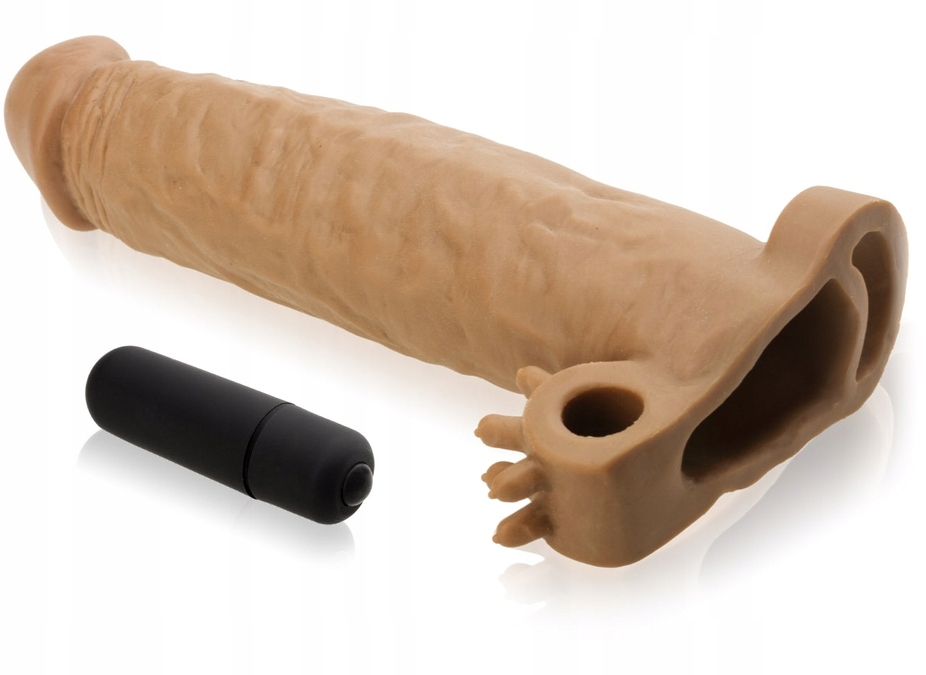 Витягніть член на 5 см! Відтепер це можливо за частки секунди завдяки багатофункціональному розширенню. Унікальна втулка для пеніса має додатковий вібромотор, який можна вставити в наконечник з масажними виступами. Це гарантує вашому коханому райські враження. Коли ви пестите її піхву своїм більшим і товстішим пенісом, купол подбає про її нетерплячий клітор. Подовжувач з кібершкіри надзвичайно гладкий і приємний на дотик. Крім того, він створює реалістичні враження, які також посилюються природними опуклостями та венами. У насадку також входить кільце, яке можна надіти на яєчка і насолодитися непередаваними відчуттями. Найякісніший матеріал ідеально прилягатиме до вашого тіла, створюючи відчуття другої шкіри. Відкрийте для себе нову якість сексу, подаруйте своїй партнерці те, про що вона мріяла, і виберіть унікальну, багатофункціональну насадку.