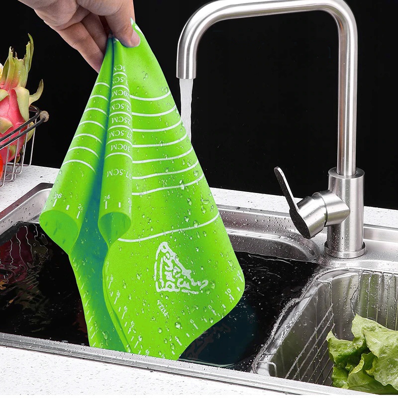 Килимок легко зберігати, його можна згортати або згортати, а після розкладання повертає початкову форму. Стіл можна успішно використовувати в мікрохвильовій печі, духовці, морозильній камері, а також можна мити в посудомийній машині.