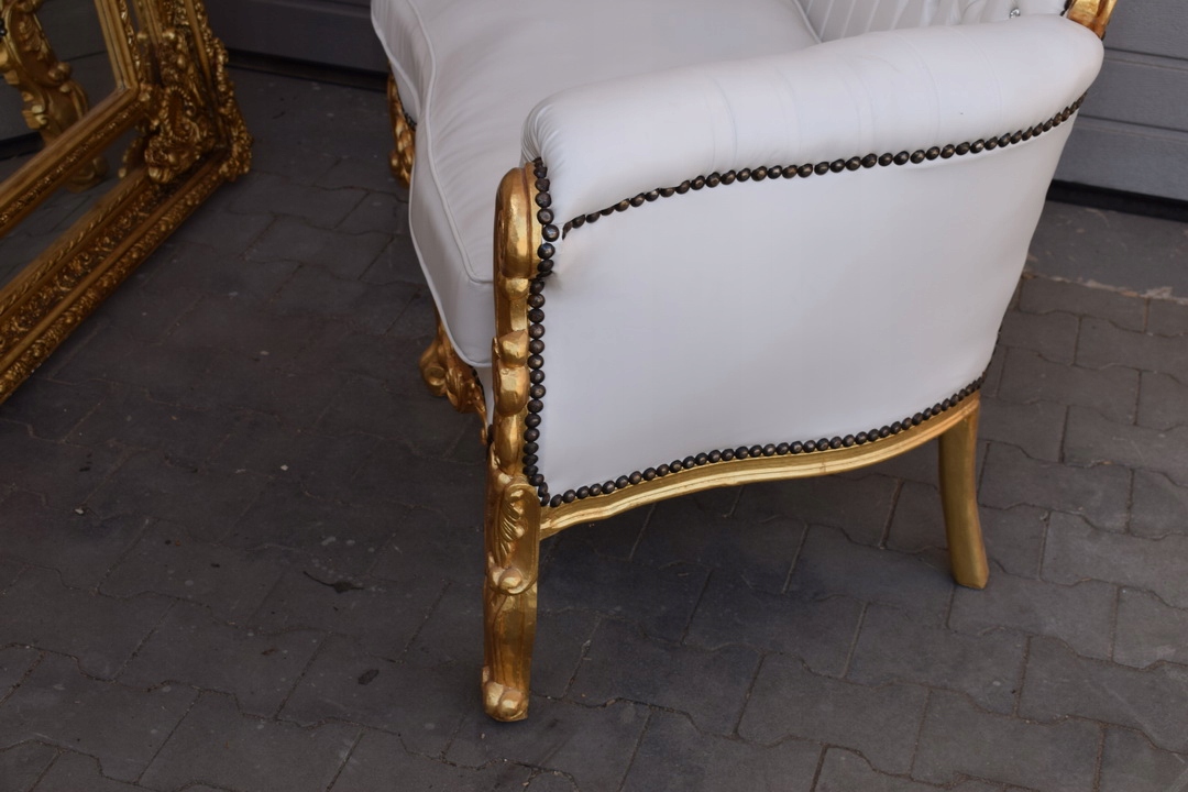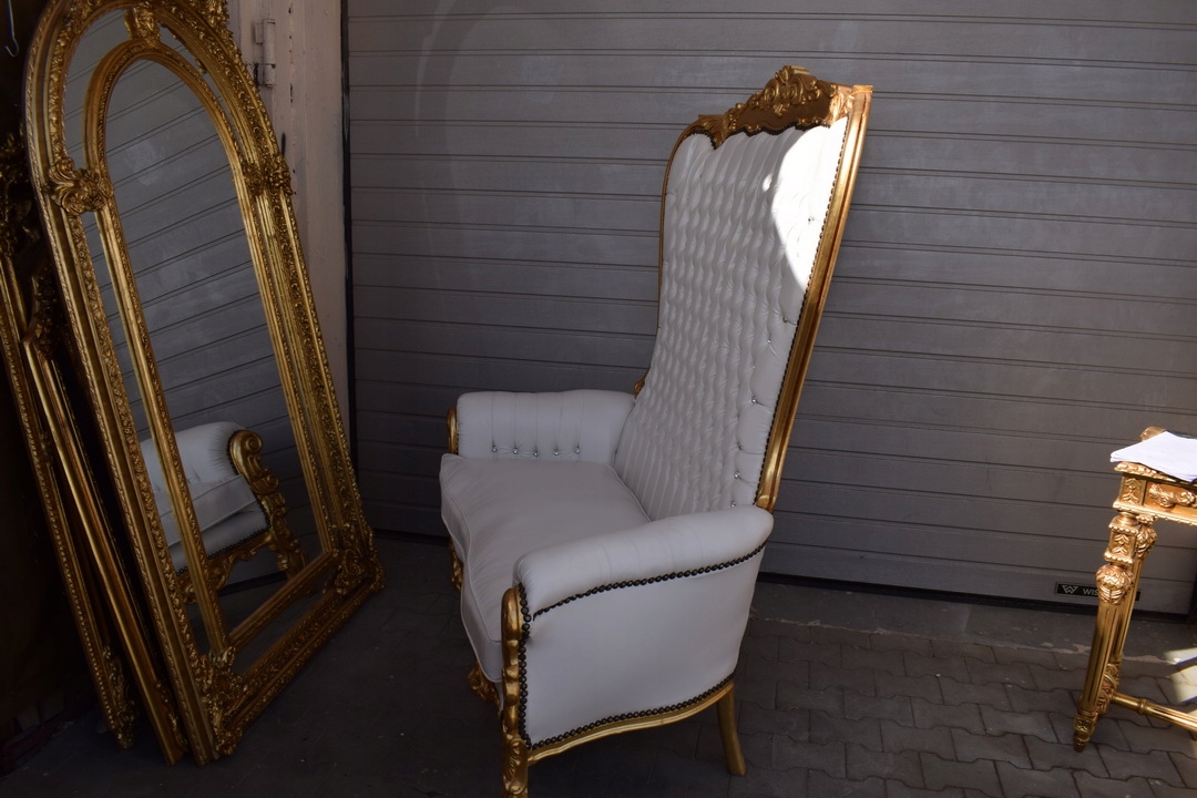 Предмет являє собою неймовірно красиве барочне крісло, оббите екошкірою.