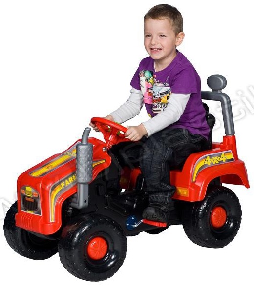 У ТРАКТОРА МАЄ ПЕДАЛЬНИЙ ПРИВІД (З ЛАНЦЮГОВИМ МЕХАНІЗМОМ) ТА ПОВОРОТНИЙ КЕРМО, З ЯКИМ ДИТИНА КЕРУЄ ВСІМ КОМПЛЕКТОМ!!!!