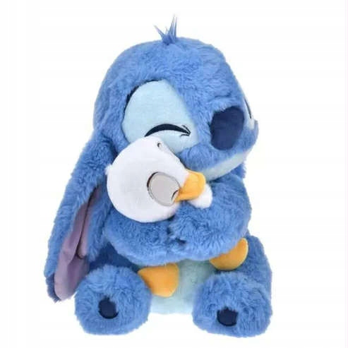 Чудовий плюшевий талісман із зображенням Стіча з качкою — чудова ідея для шанувальників мультфільму Ліло та Стіч. Блакитний інопланетянин тримає на руках милу білу качку з жовтим дзьобом і лапками, що робить усе це ще більш зворушливим.