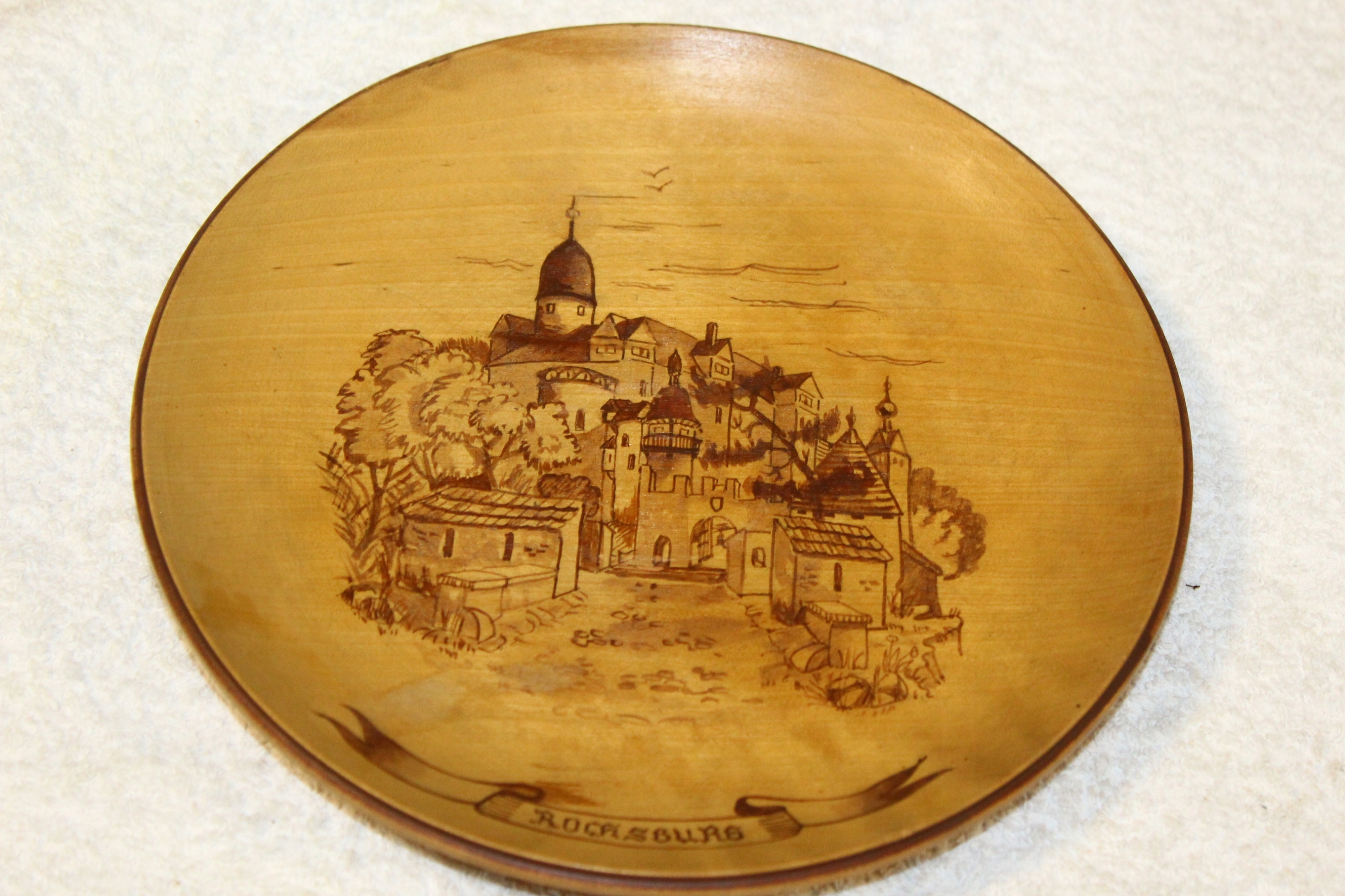 Красива дерев'яна тарілка ручної роботи, висота 2,6 см, діаметр 22 см, вага 0,19 кг. Дуже хороший стан, без пошкоджень.